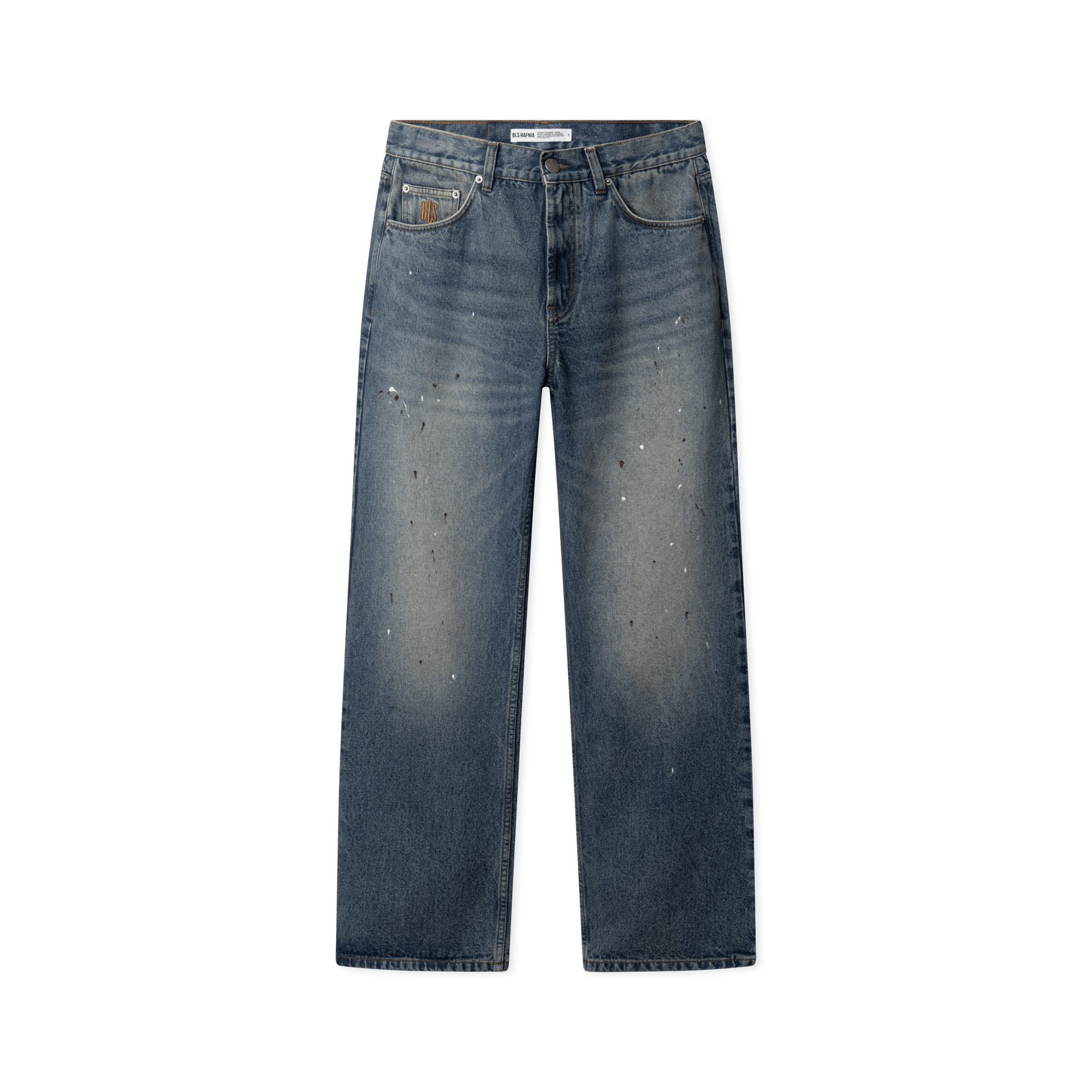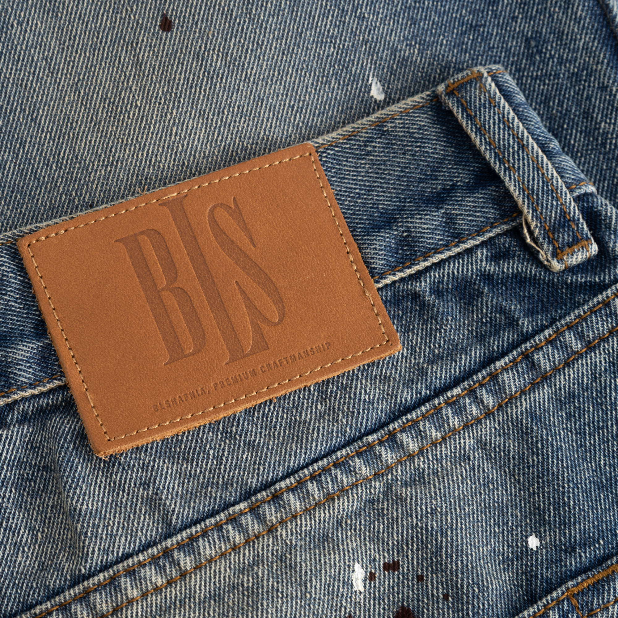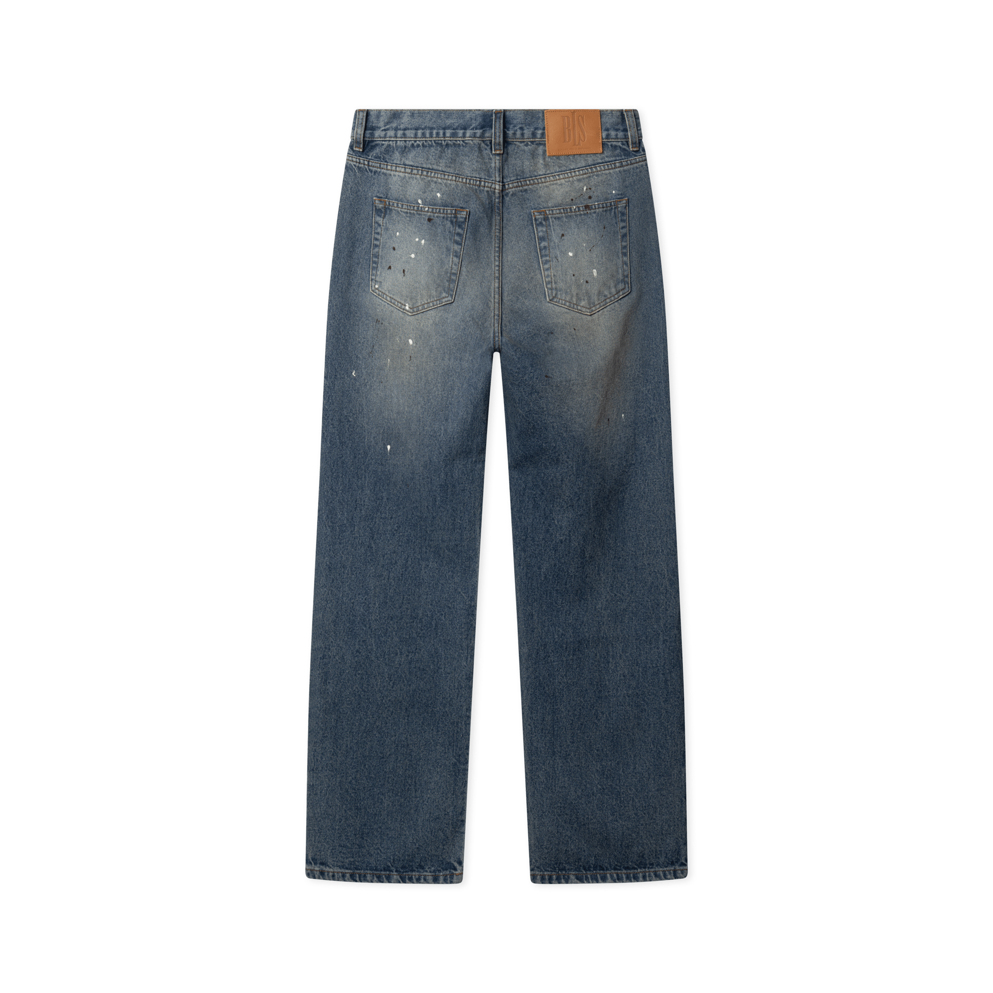 A salute to denim heritage with a contemporary streetwear edge. The Ink Jeans are cut in a straight loose silhouette, balancing structure with ease for everyday wear. Crafted from heavyweight 14oz organic cotton denim and made in Portugal, they feature an all-over paint splatter treatment that gives each pair a raw, worn-in character. Bold contrast stitching reinforces the construction, while a subtle Classic BLS logo embroidery sits just above the right front pocket. Finished with a custom BLS leather patch at the waist, these jeans are a modern classic rooted in craftsmanship and attitude.