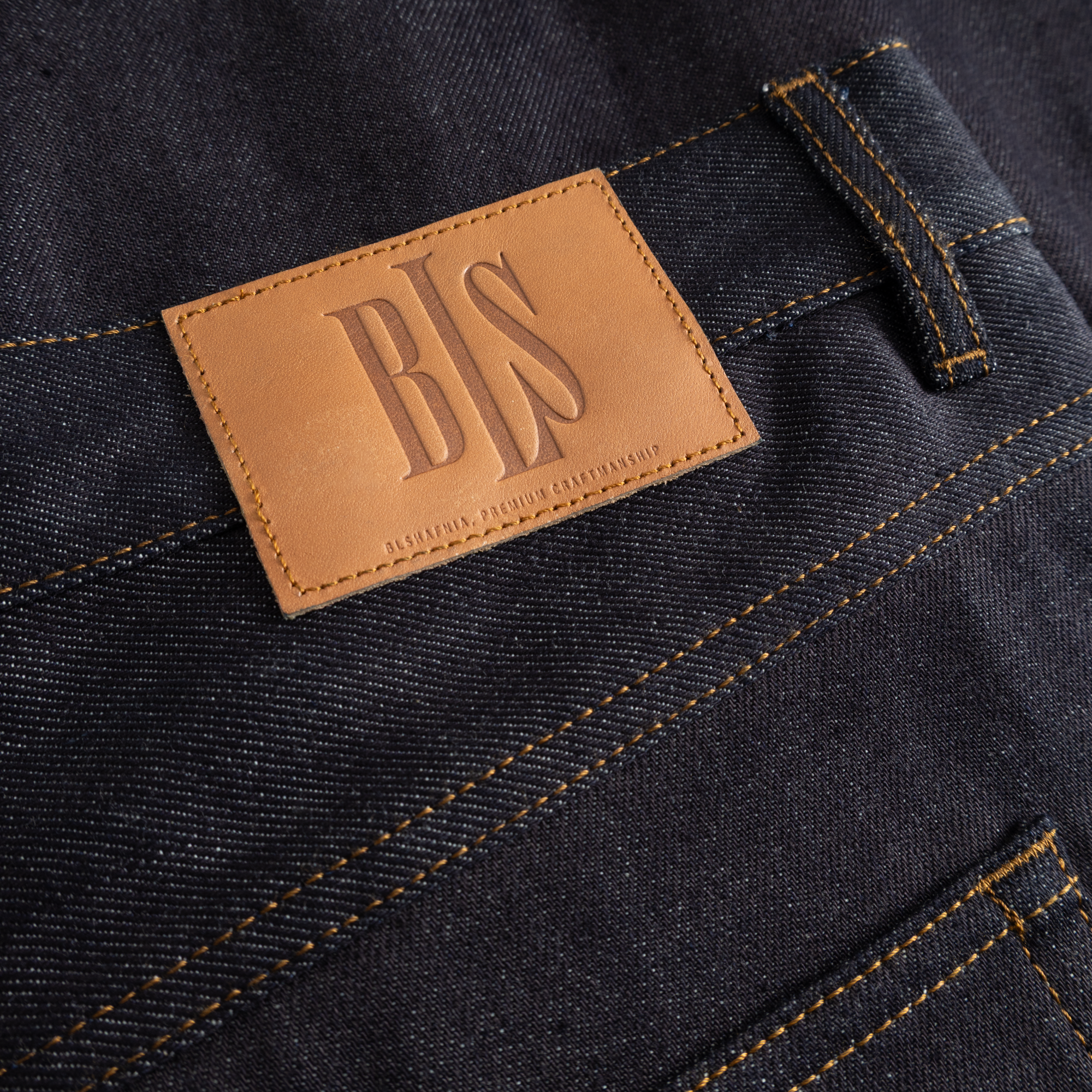 A salute to denim heritage with a contemporary streetwear edge. The Selvedge Denim Jeans are cut in an wide silhouette, designed for movement, attitude, and timeless appeal. Crafted from premium organic cotton denim and made in the EU, these jeans feature bold contrast stitching, a clean back-pocket layout, and the signature BLS logo embroidered placed on the coin pocket. Finished with a custom BLS leather patch at the waist, it’s a modern classic with roots in authenticity. They’re a modern essential that nods to workwear tradition.