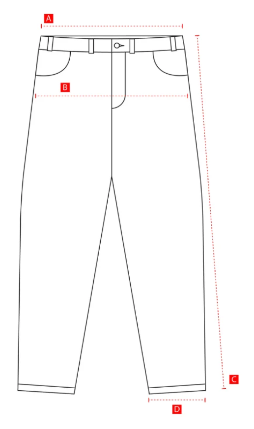 A: Width - Waist (cm) | 39 | 40 | 42 | 43 | 44 | 45 | 46 |