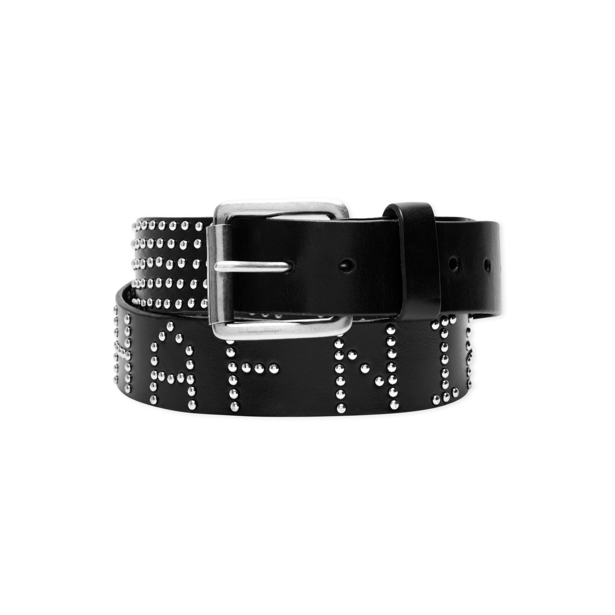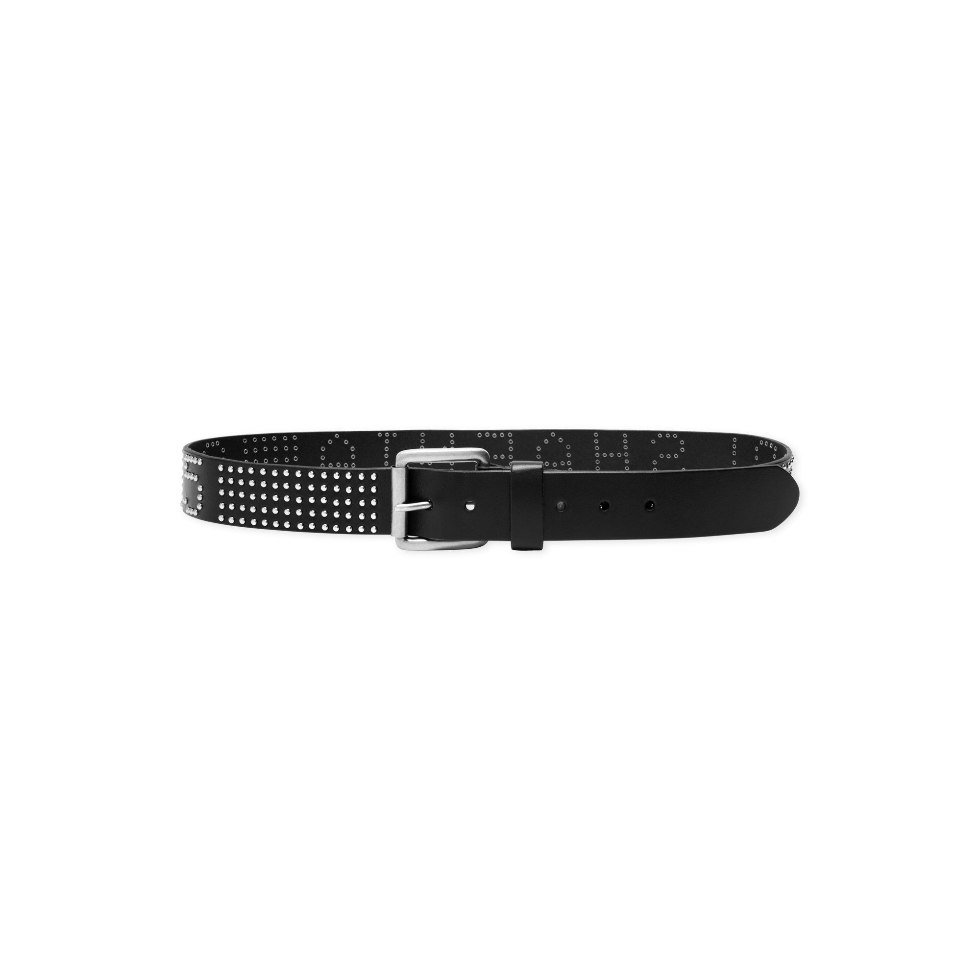 The BLS Stud Belt is a classic leather belt finished with rhinestones detailing the typing BLS HAFNIA, adding a sharp edge to any outfit.